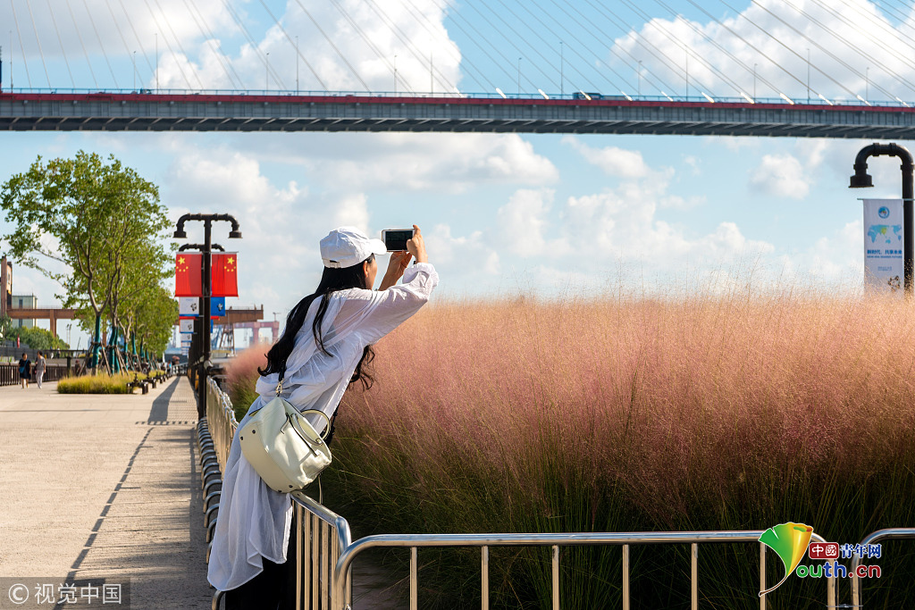 上海楊浦濱江粉黛亂子草成片盛開 美不勝收