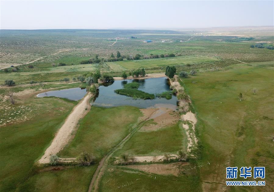 內(nèi)蒙古杭錦旗沙日召嘎查牧民白音道爾計治理過的庫布其沙漠(7月31日無人機(jī)拍攝)。 新華社記者邢廣利攝