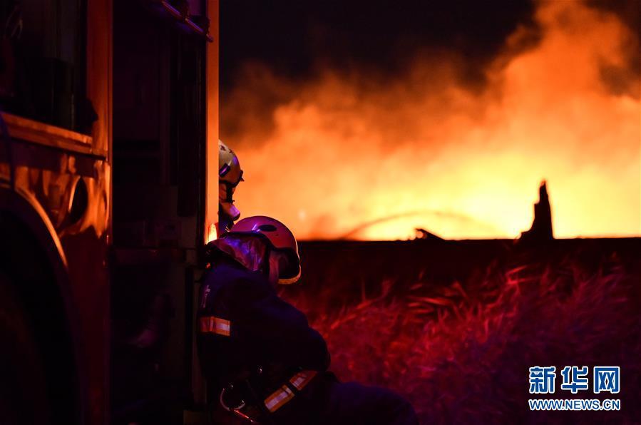 10月28日,在天津大港開發(fā)區(qū)火災現(xiàn)場附近,奮戰(zhàn)數小時的消防員在休整。10月28日晚,天津濱海新區(qū)大港開發(fā)區(qū)的一處倉儲物流公司潤滑油倉庫發(fā)生火災。 新華社記者 李然 攝