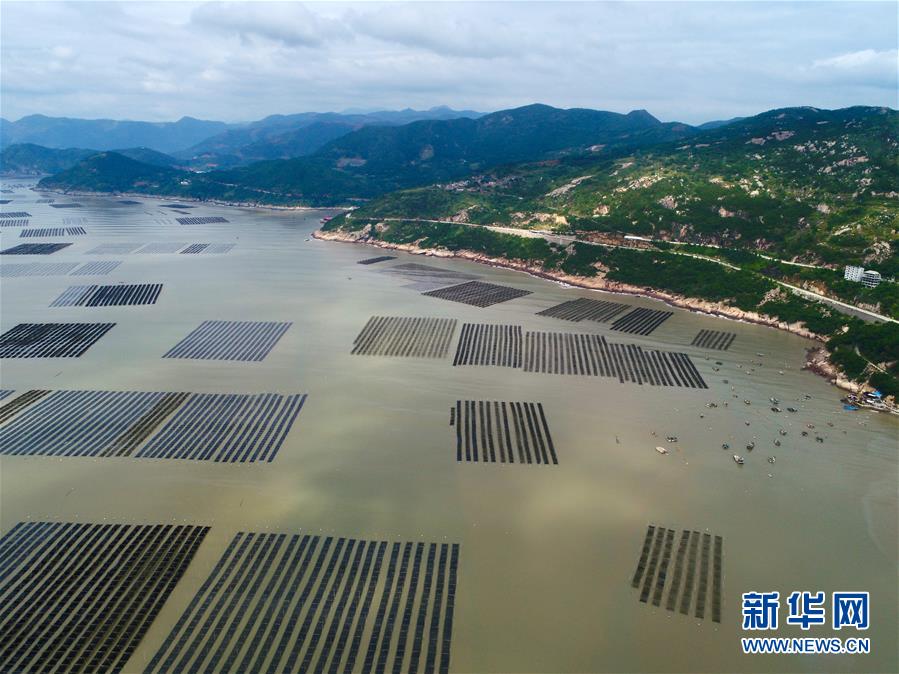 10月24日,福建莆田蔣山村村民在海上收割紫菜(無人機(jī)拍攝)?! ⌒氯A社記者姜克紅 攝