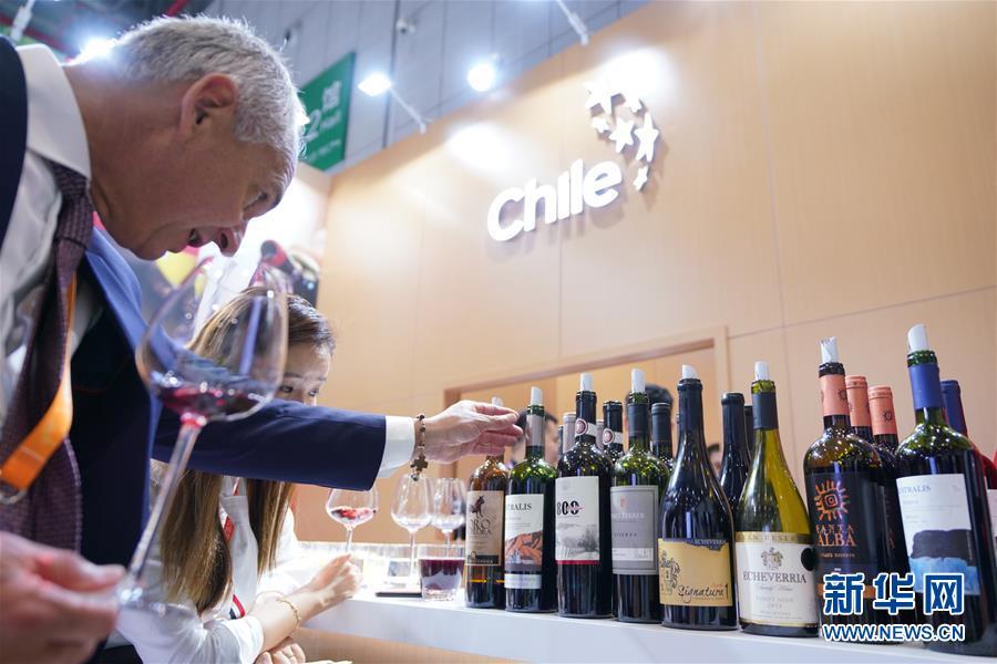 11月5日,一位男士了解智利葡萄酒。 當(dāng)日,首屆中國國際進(jìn)口博覽會在國家會展中心(上海)開幕。 新華社記者 孟鼎博 攝