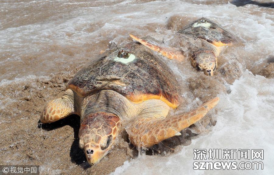 韓國(guó)水產(chǎn)部門(mén)舉辦海龜放生儀式 海龜背“天線(xiàn)”重歸大海