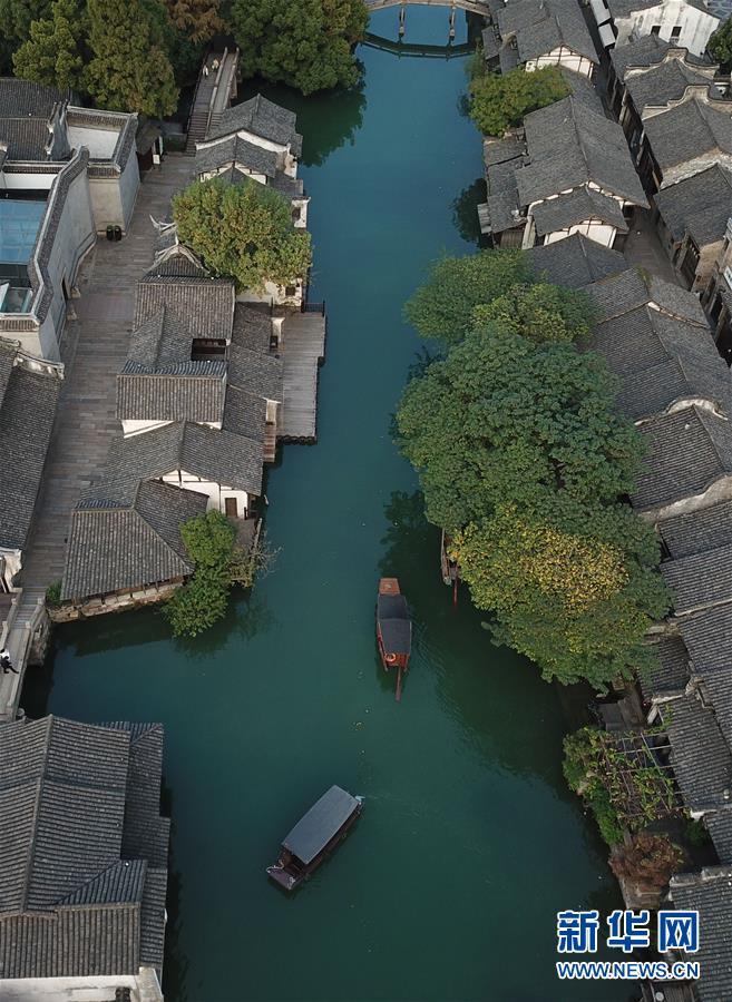 這是10月31日無(wú)人機(jī)拍攝的烏鎮(zhèn)西柵景區(qū)。 新華社記者黃宗治攝