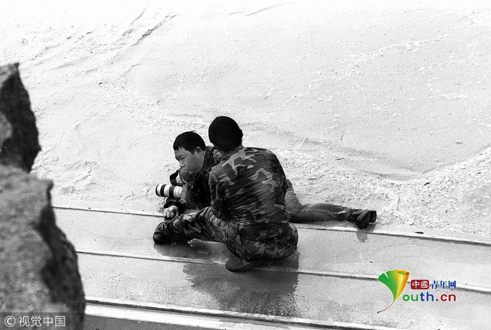 2000年10月10日,華商報(bào)記者鄧長泰在渭河決口處采訪時落入激流。 華商報(bào)記者 鄧長泰 圖片作者:胡國慶/視覺中國