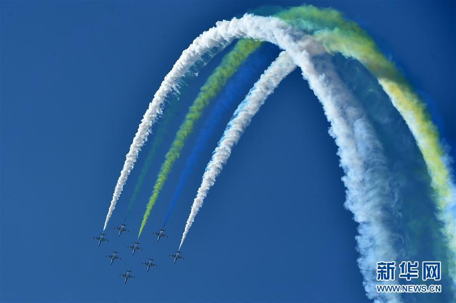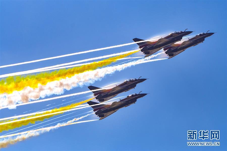 11月6日,中國空軍八一飛行表演隊(duì)在航展現(xiàn)場進(jìn)行飛行表演。當(dāng)日,第十二屆中國國際航空航天博覽會(huì)在珠海開幕。 新華社記者鄧華攝