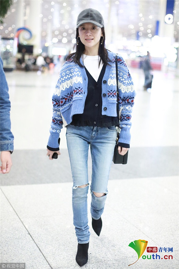 董潔素面朝天現(xiàn)身機(jī)場(chǎng)