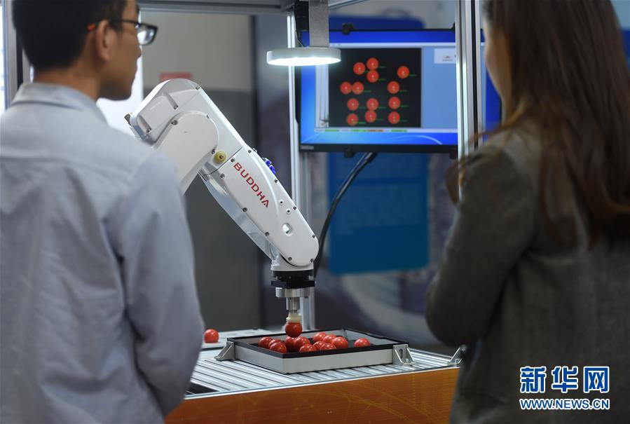 這是展出的一款工業(yè)機器人(攝于11月10日)。 新華社記者韓傳號攝