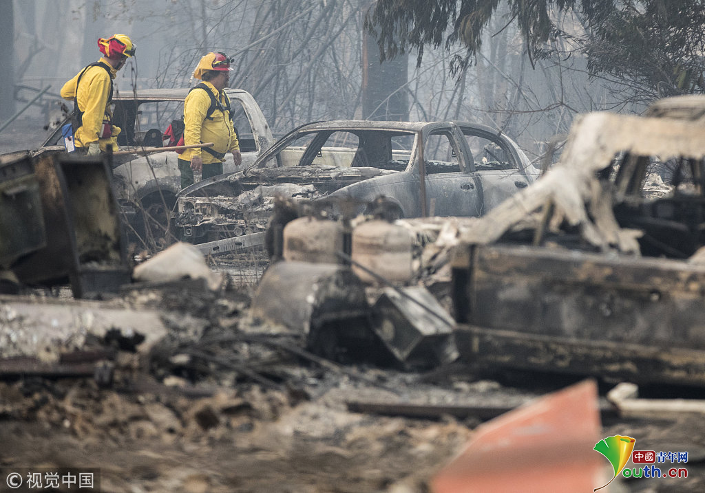 當(dāng)?shù)貢r間2018年11月10日,美國加州Paradise,當(dāng)?shù)厣交鹚僚埃瑸?zāi)區(qū)民眾紛紛帶領(lǐng)家畜進行轉(zhuǎn)移。自本周三開始,加州多地發(fā)生山火,火勢蔓延迅猛,數(shù)萬人被迫撤離,數(shù)以萬計的房屋被燒毀。圖片作者:Jessica Christian
