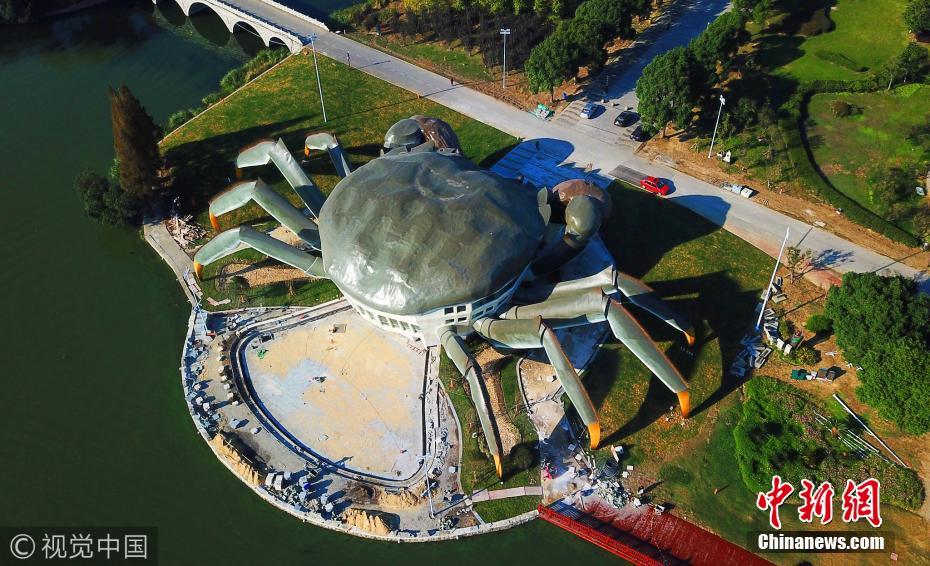 據(jù)了解,這是建造中的大閘蟹生態(tài)館,預(yù)計未來將在大閘蟹的白肚內(nèi)容納三層空間,集休閑、娛樂,以及有關(guān)大閘蟹體驗(yàn)于一體的設(shè)施。圖片來源:視覺中國