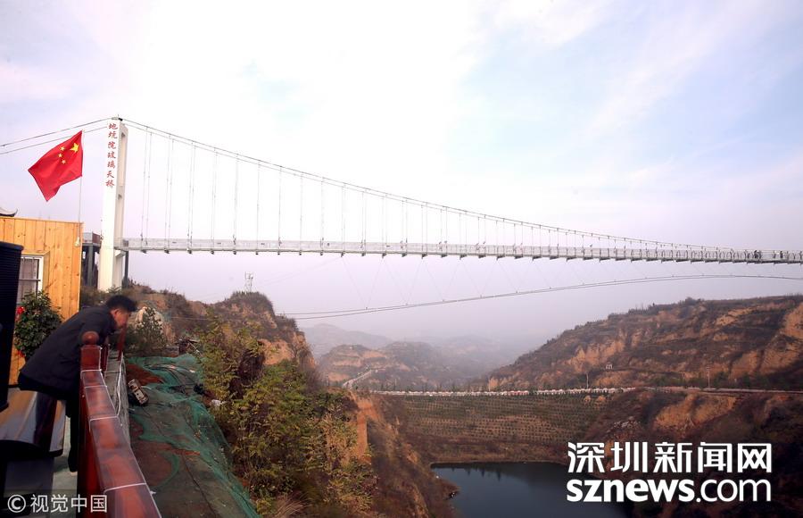 實拍地坑院景區(qū)玻璃天橋 全長318米高108米