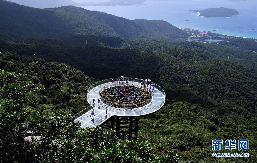 8月31日,游客在玻璃觀景平臺(tái)上參觀游覽。近日,位于海南省三亞市亞龍灣熱帶天堂森林公園的大佛石全海景玻璃棧道開始正式營(yíng)業(yè)。凌空而建的玻璃棧道全長(zhǎng)400米,游客可將亞龍灣的美景盡收眼底。新華社記者郭程攝