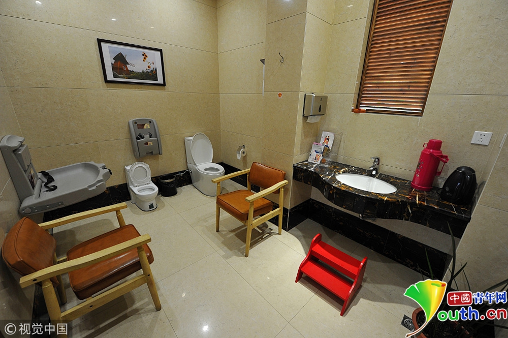 還設有第三衛(wèi)生間,是專為殘疾人、以及帶著小孩的父母們提供的一個私密空間。免費上這樣超豪華、且復古又特有文藝范兒的公廁,能讓人感受到一種如“家”般的舒適,像是進了五星級酒店似的。