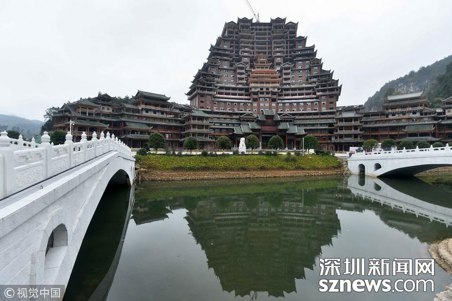 深圳新網(wǎng)網(wǎng)訊 始建于2016年9月的貴州省獨(dú)山縣水司樓已進(jìn)入工程收尾階段。雄偉壯麗造型別致的水司樓,是集會(huì)展博覽、酒店住宿、游覽觀光等于一體的大型綜合體。除具有水族特色元素外,該建筑還融合了苗族、布依族特色,是獨(dú)山縣凈心谷景區(qū)最具標(biāo)志性的宏大建筑。該樓占地面積5900平方米,總建筑面積60000平方米,樓高99.9米,共24層,是世界上最高大最大最壯觀的水族建筑,被稱為“天下第一水司樓”。 水司樓是按照水族依山畔水而居的傳統(tǒng)習(xí)俗和建筑特征修建,是水族人民的文化符號(hào)和智慧的象征,背靠凈心河谷山脊,以弧形的平面布局模式,如同張開懷抱的巨人,緊擁美麗的姻脂河灣,設(shè)計(jì)巧妙,工藝精巧。