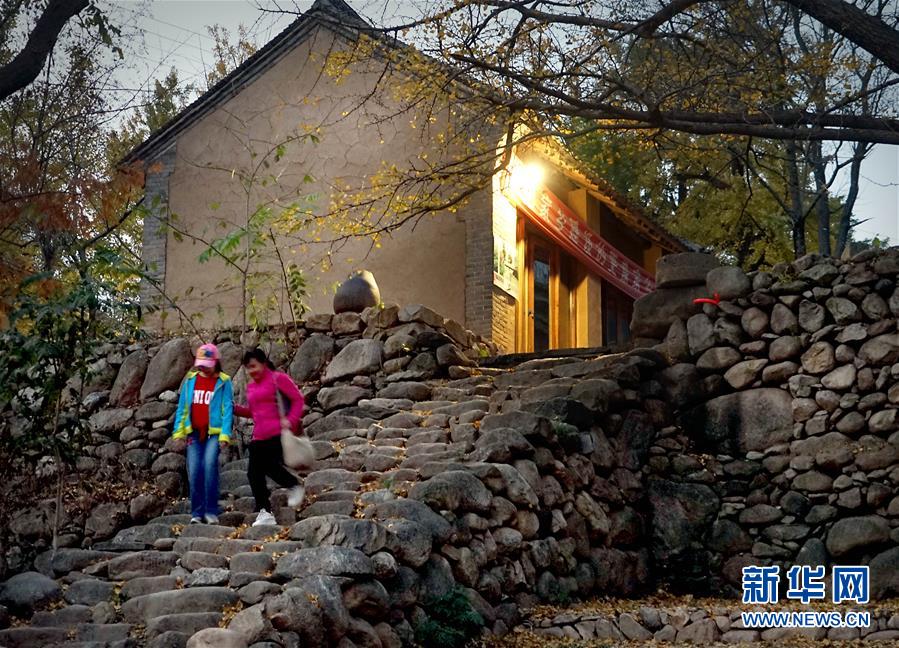 10月31日,在河南省嵩縣白河鄉(xiāng)下寺村,游客走出一家客棧。 深秋時(shí)節(jié),河南省嵩縣白河鄉(xiāng)下寺村的古銀杏林為小山村披上了“金甲”。漫天黃葉,遍地金色,一幢幢民居掩映在色彩斑斕的世界里,美不勝收,吸引了眾多游客賞景拍照。 新華社記者 李安 攝
