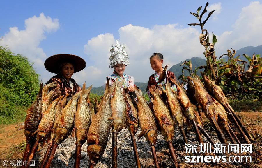 廣西柳州市融水縣山區(qū)有插秧時(shí)節(jié)放養(yǎng)鯉魚苗的習(xí)俗,金秋時(shí)節(jié)稻熟魚肥,收稻燒魚成為別致一景。