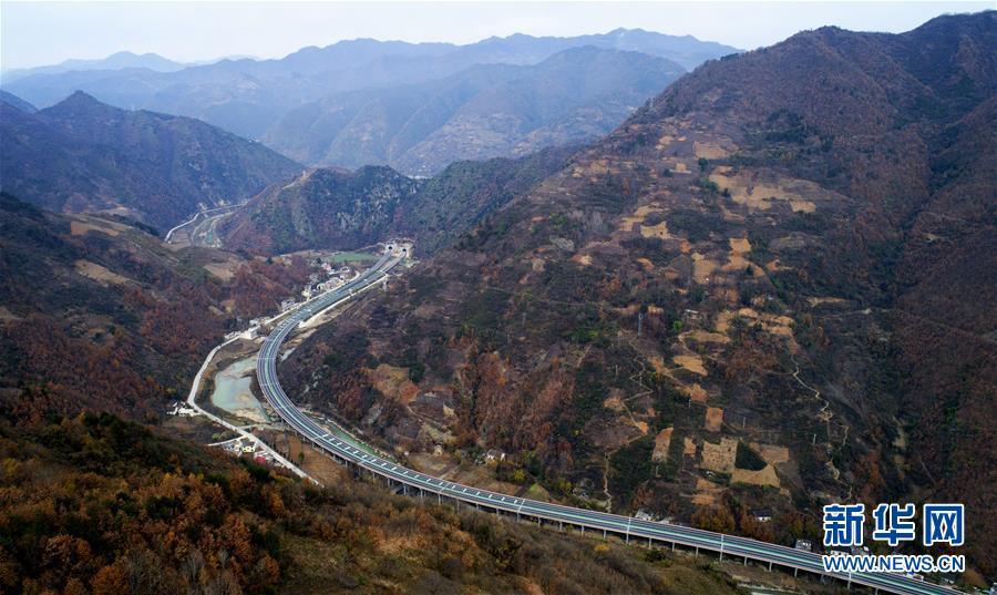 11月20日拍攝的水陽(yáng)高速公路黃家灣特大橋路段(無(wú)人機(jī)拍攝)。 近日,記者從陜西省交通建設(shè)集團(tuán)公司了解到,陜西柞水至山陽(yáng)高速公路已全線貫通即將通車(chē)。據(jù)介紹,(柞)水(山)陽(yáng)高速公路全長(zhǎng)78.8公里,開(kāi)通后將實(shí)現(xiàn)包茂高速、福銀高速在陜南商洛地區(qū)的連接,開(kāi)辟出秦嶺南麓的一條橫向高速大通道,對(duì)完善陜西高速公路路網(wǎng)結(jié)構(gòu)、促進(jìn)陜南區(qū)域經(jīng)濟(jì)發(fā)展、加快山區(qū)群眾脫貧致富具有重要意義。 新華社記者劉瀟攝