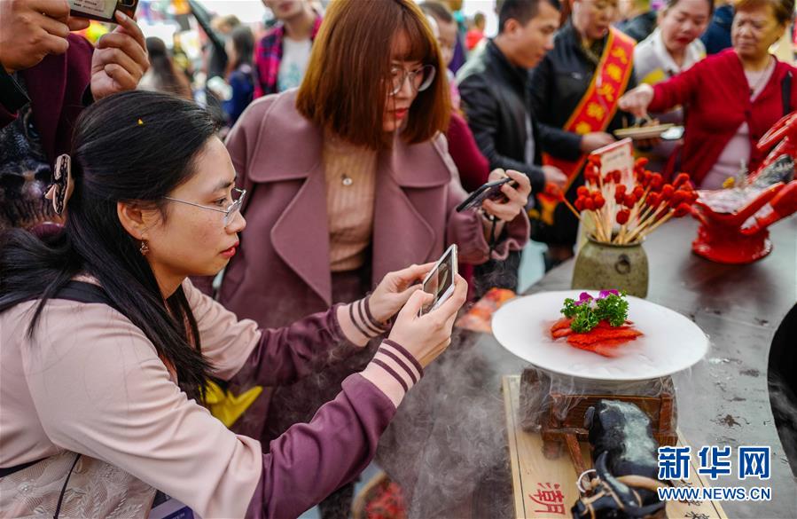 10月19日,重慶火鍋美食文化節(jié)現(xiàn)場(chǎng)展出的各色火鍋菜品吸引眾人拍攝。 當(dāng)日,第十屆中國(guó)(重慶)火鍋美食文化節(jié)在重慶市江北區(qū)正式開(kāi)幕。本屆火鍋美食文化節(jié)為期4天,以“麻辣happy城市節(jié)日”為主題,50000平方米的展區(qū)吸引了70余個(gè)火鍋品牌、300余家火鍋供應(yīng)鏈企業(yè)參展,萬(wàn)人同燙火鍋的盛況在“火鍋之都”重慶再現(xiàn)。 新華社記者 劉潺 攝