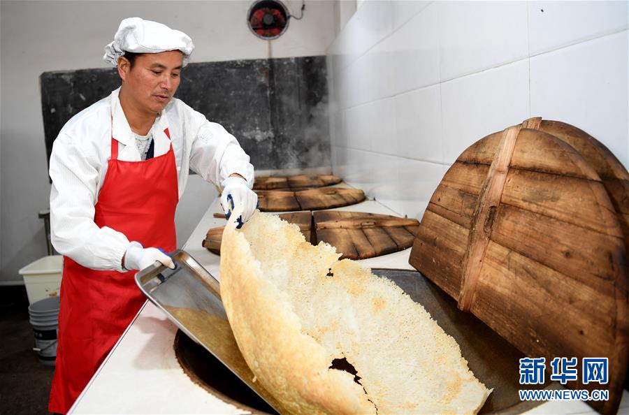 11月22日,汪明祥在鍋巴廠(chǎng)里加工鍋巴。新華社記者劉軍喜攝