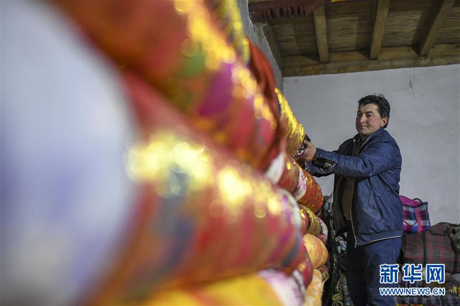 在塔什庫爾干塔吉克自治縣大同鄉(xiāng)阿克托尕欄桿村一組都熱的舊居中,都熱·加爾曼在出發(fā)前一天夜晚檢查搬遷物品,看有無遺漏(11月16日攝)。新華社記者胡虎虎攝