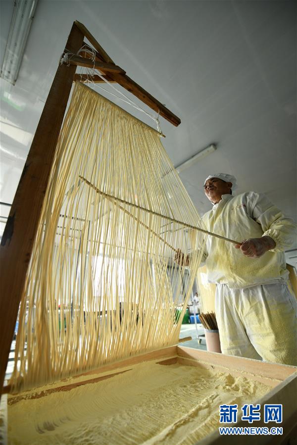 河北石家莊的藁城宮面歷史悠久,因曾進(jìn)貢清朝皇宮而得名。宮面采用手工制作,整個生產(chǎn)過程包括和面、開條、盤條、上軸、分面等十幾道工序,以“面細(xì)能穿針,空心有韌性”為特色,食用方便,營養(yǎng)豐富。藁城宮面制作技藝于2013年入選河北省級非物質(zhì)文化遺產(chǎn)名錄。