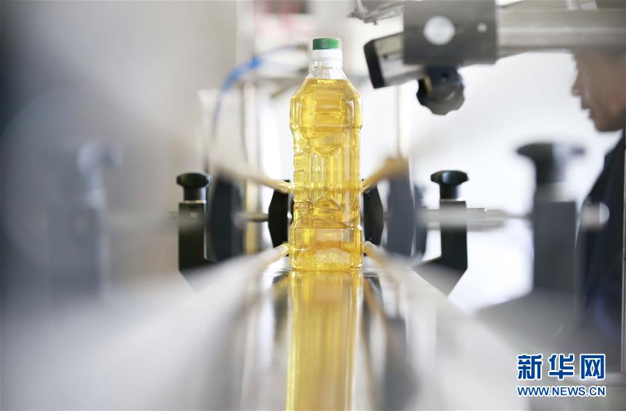 11月23日,在廣西柳州三江侗族自治縣一家生物科技公司,工作人員在茶油灌裝生產(chǎn)線上忙碌。新華社記者任正來(lái)攝