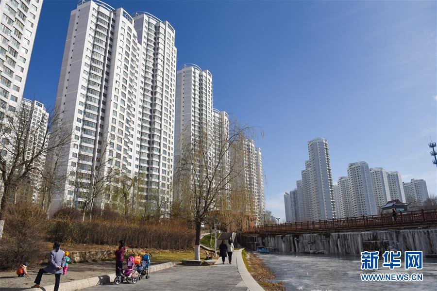 11月28日,市民帶著孩子在西寧市海湖新區(qū)的公園內游玩。