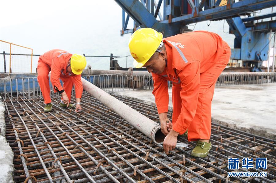10月23日,在重慶涪陵,施工人員在渝懷鐵路涪秀二線重點(diǎn)工程——烏江右線大橋主跨合龍現(xiàn)場作業(yè)。 當(dāng)日,由中鐵四局承建的渝懷鐵路涪秀二線重點(diǎn)工程——烏江右線大橋主跨成功合龍,標(biāo)志著大橋主體工程全部順利結(jié)束。烏江右線大橋項(xiàng)目全程460.1米,主跨192米,跨越烏江和319國道。在兩年多的建設(shè)過程中,施工人員攻克了“不等高墩”“不對稱邊跨”“邊跨入隧”等多個(gè)技術(shù)難題。 新華社記者王全超攝