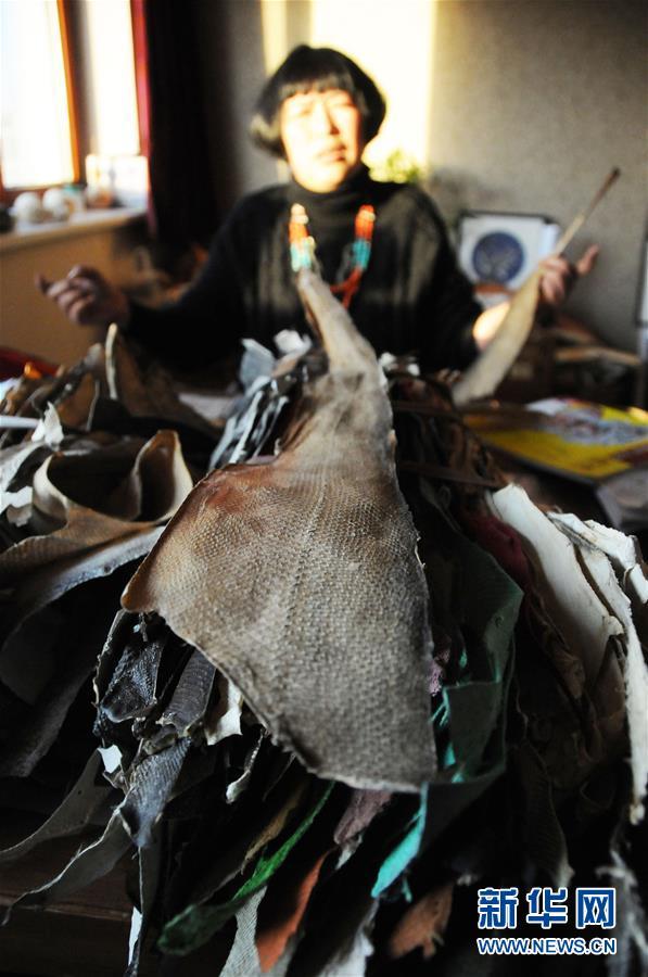 張琳的工作室堆滿了魚皮(2011年11月28日攝)。國家級非物質(zhì)文化遺產(chǎn)赫哲族魚皮制作技藝是我國赫哲族傳統(tǒng)手工藝術(shù)。作為這項技藝的黑龍江省級傳承人,十余年來,張琳一直從事魚皮畫的研究和創(chuàng)作,并通過做推廣、開講座、辦活動,讓更多年輕人了解并喜歡上這一傳統(tǒng)手工藝,將這項瀕臨失傳的藝術(shù)更好地傳承下去。新華社記者 王凱 攝