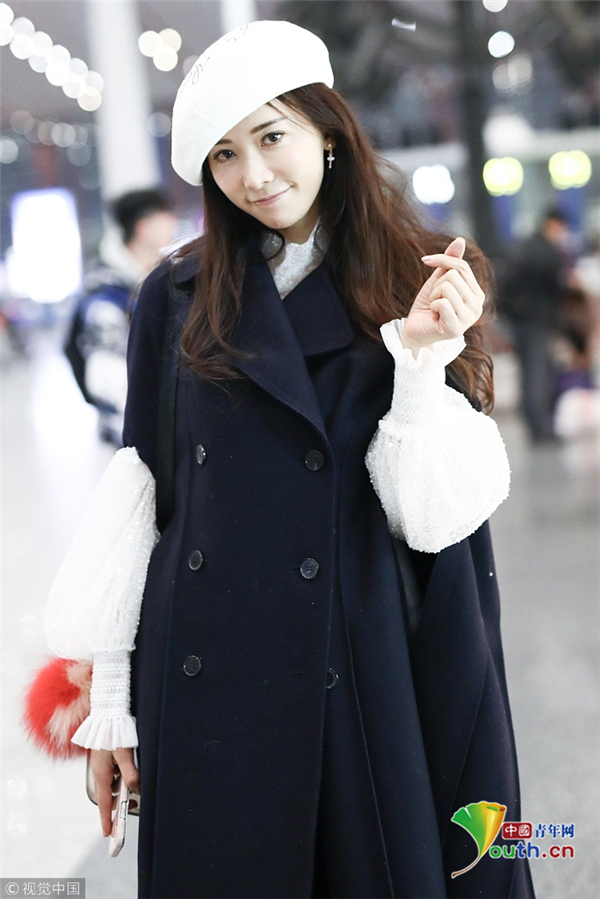11月19日,北京,林志玲現(xiàn)身機(jī)場(chǎng),林志玲穿黑色大衣配貝雷帽溫暖俏皮,揮手賣萌露修長美腿女神氣質(zhì)爆棚。