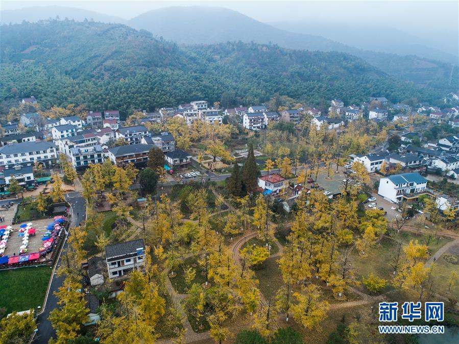 空中俯瞰十里銀杏林長廊(11月16日無人機(jī)拍攝)。近日,在浙江省長興縣小浦鎮(zhèn),“十里銀杏長廊”和近千畝花海經(jīng)過近一年的升級改造后,以嶄新的面貌與游客見面?;ê?、觀光小火車、古村民宿、銀杏長廊等旅游項目全面提升了小浦鎮(zhèn)鄉(xiāng)村旅游的品質(zhì)。新華社記者 徐昱 攝