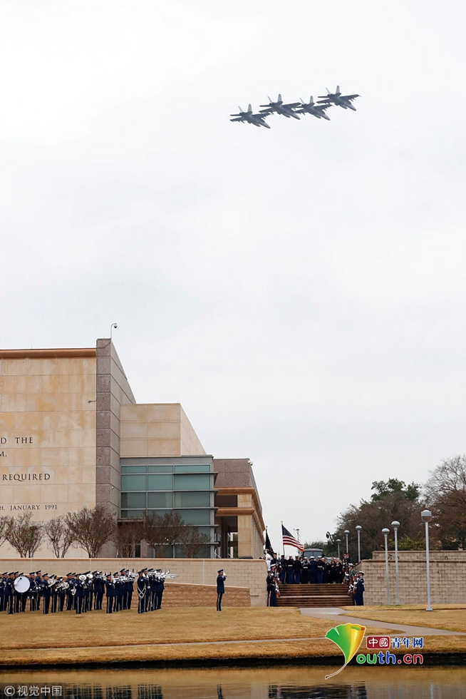 老布什靈柩下葬德州家族墓地 21架F18戰(zhàn)機(jī)編隊(duì)悼念