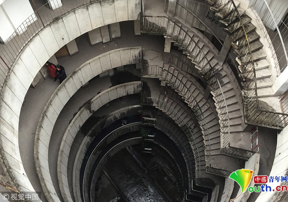 重慶洋人街景區(qū)內(nèi)的穿樓觀光索道吸引不少游客體驗。據(jù)悉,跨度長1000米的觀光索道將隨著洋人街的拆遷而搬離。中新社記者陳超 攝 2017年9月27日,重慶,南岸區(qū)某小區(qū)的“螺旋”停車場,從公路到車庫要下5層樓,司機(jī)需要轉(zhuǎn)無數(shù)個360度圈。圖片來源:視覺中國