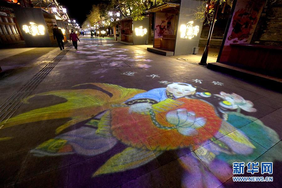 楊柳青年畫主題燈光布滿在天津楊柳青古鎮(zhèn)步行街上(12月4日攝)。 運(yùn)河穿城過,古鎮(zhèn)草色新,千年畫鄉(xiāng)楊柳青自傳統(tǒng)中浸潤出與眾不同的顏色。40年斗轉(zhuǎn)星移,這個(gè)沉淀千年的小鎮(zhèn),用別樣的風(fēng)姿講述了一個(gè)歷史與現(xiàn)在碰撞而出的改革“新”故事。 新華社記者岳月偉攝