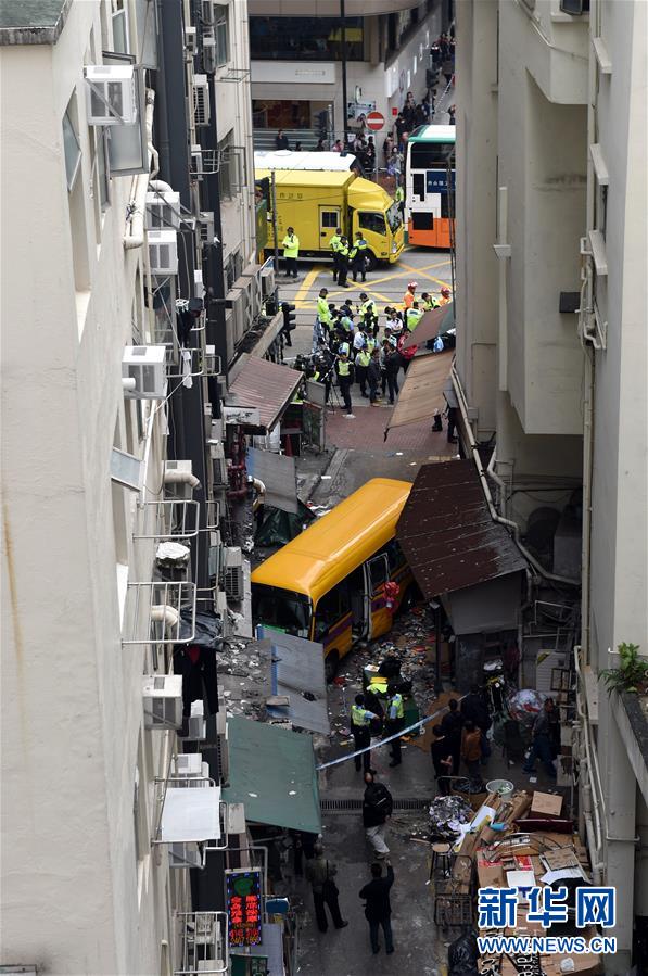 這是12月10日在香港北角拍攝的事故現(xiàn)場(chǎng)。 12月10日下午2時(shí)左右,香港北角發(fā)生車禍,一輛校巴沖上行人路。 新華社記者 盧炳輝 攝