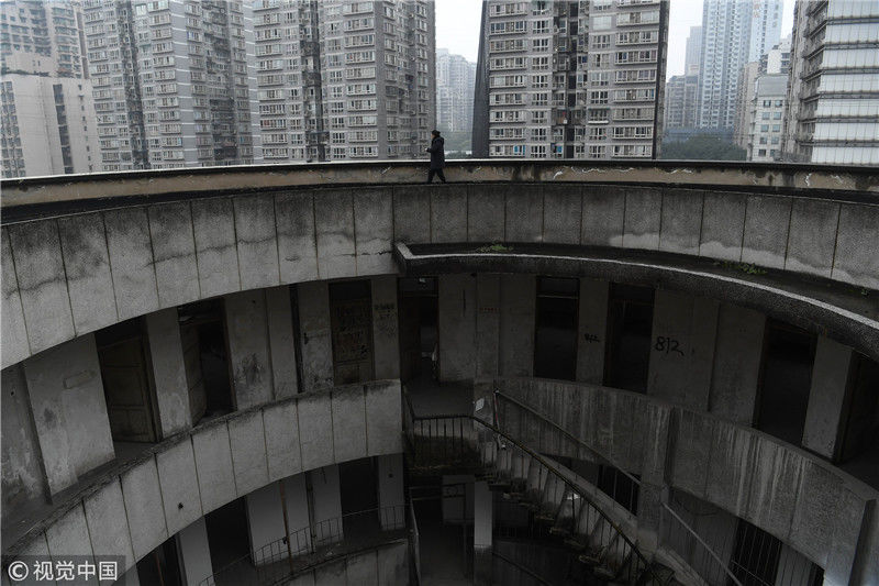 2018年12月6日,重慶江北紅旗河溝汽車站內(nèi),有一棟獨特的八層圓環(huán)狀建筑,底層每天有不少進出站的客車通行。