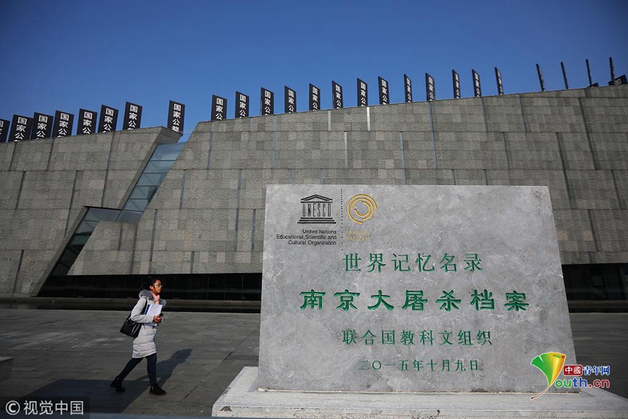 2018年12月12日,工作人員從侵華日軍南京大屠殺遇難同胞紀(jì)念館內(nèi)的“世界記憶名錄-南京大屠殺檔案”紀(jì)念碑前經(jīng)過。12月13日,南京大屠殺死難者國家公祭儀式將在侵華日軍南京大屠殺遇難同胞紀(jì)念館內(nèi)舉行。圖片作者:泱波