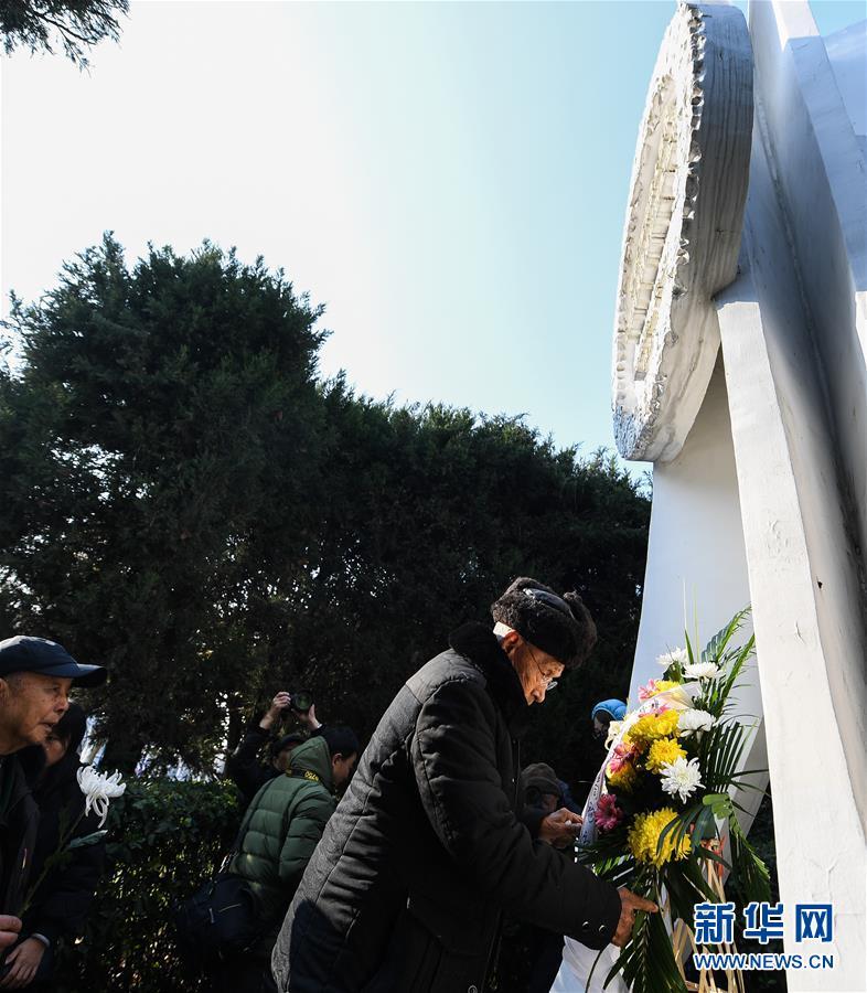 12月12日,抗戰(zhàn)老兵在侵華日軍南京大屠殺中山碼頭遇難同胞紀(jì)念碑前獻(xiàn)花。 當(dāng)日,來(lái)自湖南、江蘇等地的4名抗戰(zhàn)老兵以及志愿者、南京當(dāng)?shù)卮髮W(xué)生代表等來(lái)到侵華日軍南京大屠殺中山碼頭遇難同胞紀(jì)念碑前獻(xiàn)花、默哀,祭奠遇難同胞。 新華社記者 季春鵬 攝