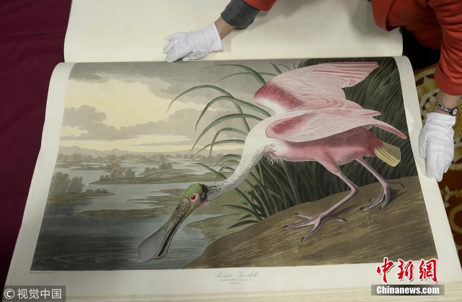 今年夏天,《美國(guó)鳥(niǎo)類》在紐約拍賣,最后以965萬(wàn)美元的價(jià)格成交。這本珍貴的書(shū)被鎖在一個(gè)特殊的保險(xiǎn)庫(kù)里,但它屬于公眾,任何人都可以提前預(yù)約并在工作人員監(jiān)督下翻閱。圖片來(lái)源:視覺(jué)中國(guó)