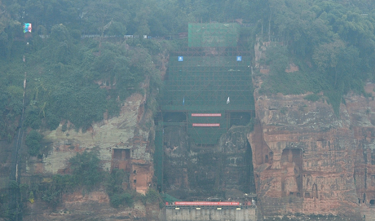 樂山大佛本體已全遮蔽 胸腹開裂病害 ...