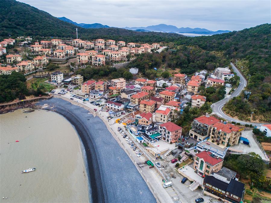 空中俯瞰朱家尖烏石塘的臨海民宿(12月15日無人機(jī)拍攝)。新華社記者 徐昱 攝