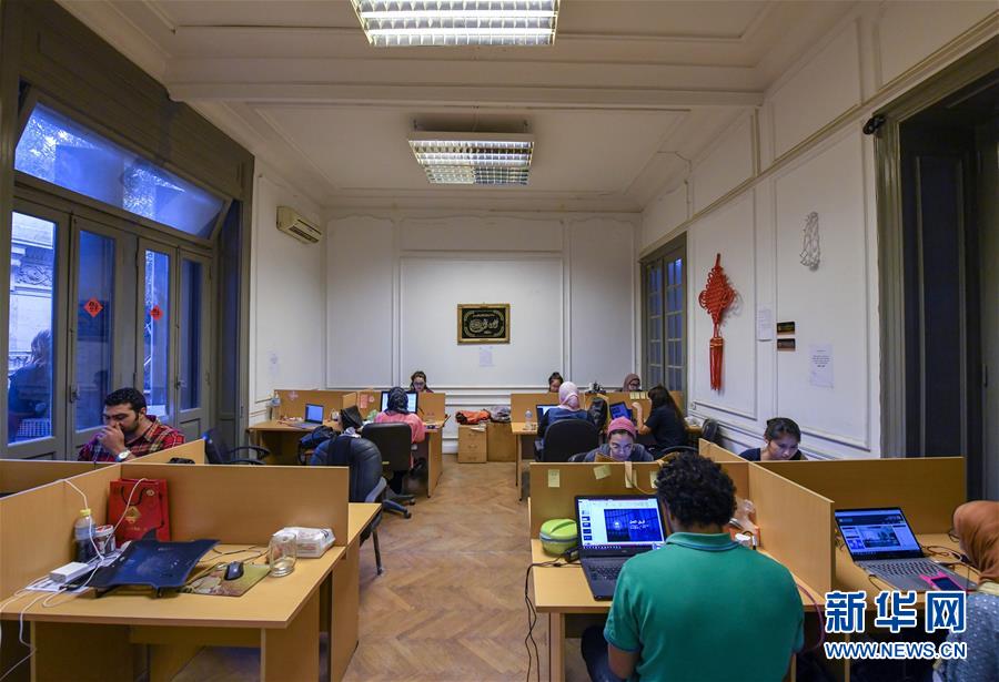 這是2018年4月12日在埃及首都開羅拍攝的泛阿網(wǎng)絡(luò)公司辦公室。