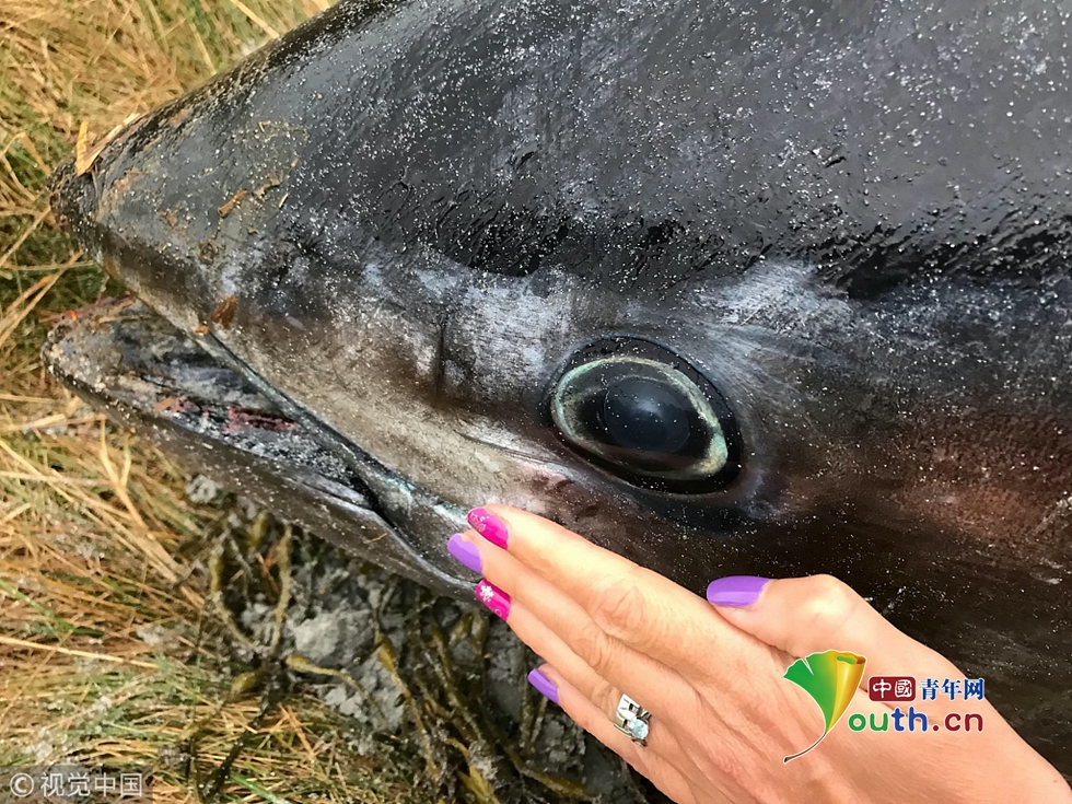 英國沙灘現(xiàn)2米長巨型藍(lán)鰭金槍魚