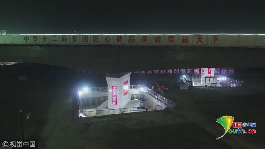 2018年12月1日,北京,大興國際機場高速公路重要節(jié)點工程“三線四橋”同步轉(zhuǎn)體工程順利完成。機場配套交通“咽喉要道”的打通,標(biāo)志著大興國際機場高速公路全線主體基本建成,軌道交通新機場線地上段基本貫通。美立/視覺中國