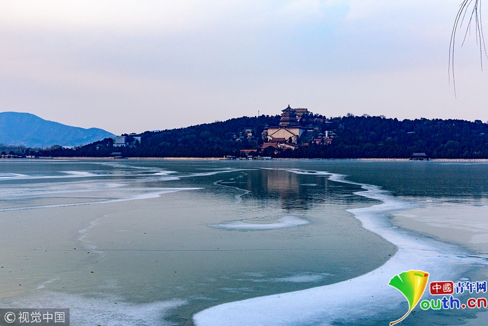 昆明湖水面結(jié)冰。