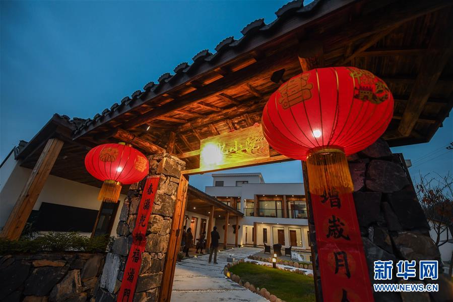 夜色中的民宿“初憶小院”(12月19日攝)。該民宿是河橋鎮(zhèn)“90后”女孩章淑貞開辦的,民宿融入了大量的現(xiàn)代建筑設計風格,深受年輕人的喜愛。 新華社記者 徐昱 攝