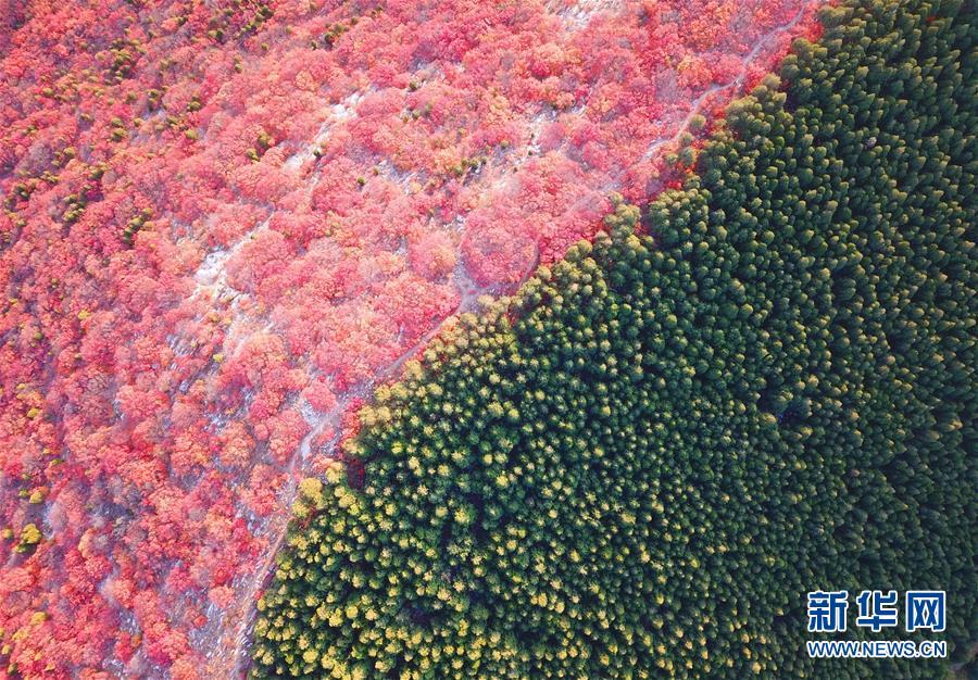 這是2018年10月31日航拍的山東濟(jì)南楔子山色彩分明的樹林。 大地之色,俯仰之間;壯美山河,是我的祖國。2018年,新華社記者操縱無人機“飛閱”華夏大地,在最美的時節(jié),定格下她的色彩斑斕。 新華社記者 朱崢 攝
