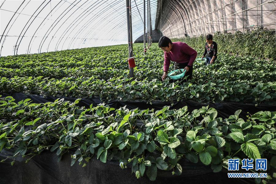 12月19日,農(nóng)戶在大棚里管理草莓。 2017年5月,遼寧省鐵嶺市昌圖縣大四家子鎮(zhèn)方家船口村利用土地確權(quán)成果,由村兩委班子成員領辦創(chuàng)辦了昌圖久晟果木蔬菜種植專業(yè)合作社。到2018年9月,合作社利用產(chǎn)業(yè)扶貧資金、壯大村集體經(jīng)濟扶持資金、村集體用地和村民入股資金建成了11個“股份制大棚”,主要種植草莓等作物,產(chǎn)品通過電商銷往云南、四川、北京、上海等地,預計第一期可為265名貧困戶每人分紅860元。 新華社記者潘昱龍攝