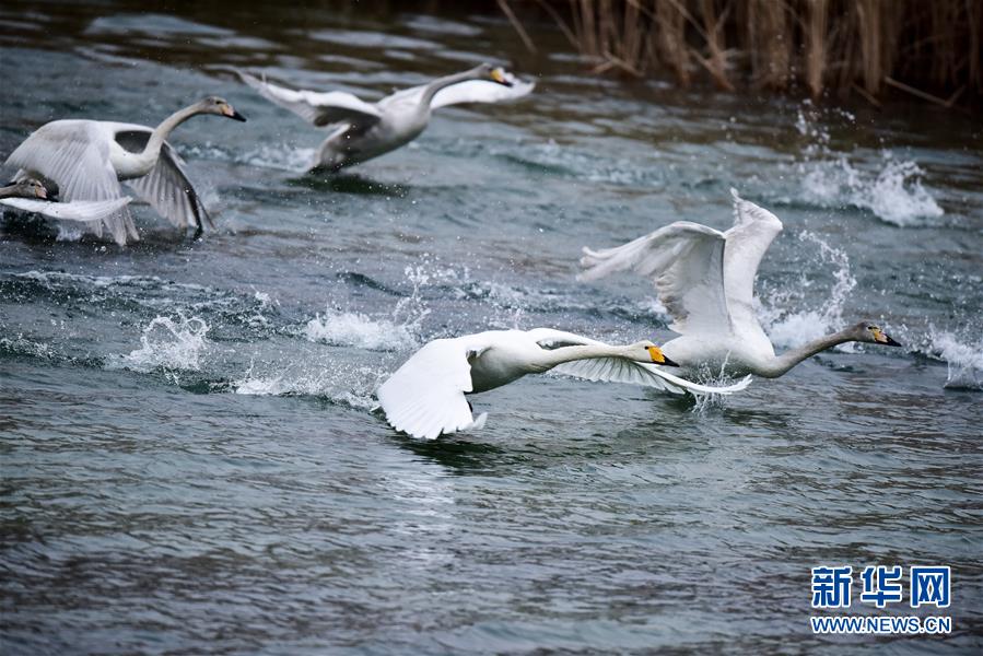 每年冬季,數(shù)百只天鵝遷徙到青海省貴德縣黃河濕地越冬,冬季的黃河成了生機盎然的“天鵝湖”。