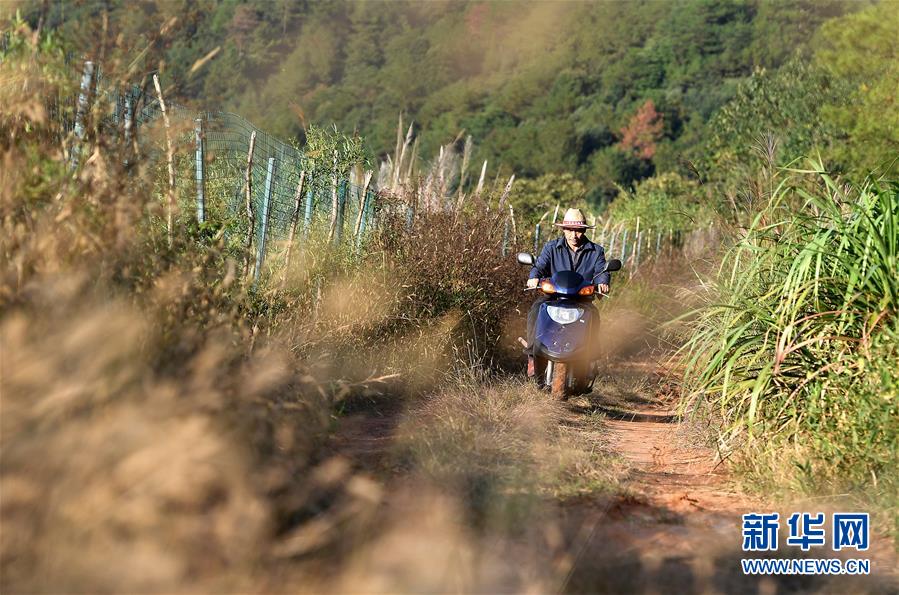 舒港發(fā)騎著電動車去查看自家種植的西洋參(10月27日攝)。