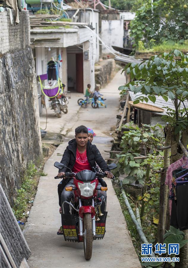 在云南省金平苗族瑤族傣族自治縣者米鄉(xiāng)地棚村小組,一名苦聰青年騎著摩托車出村(11月13日攝)。新華社記者 胡超 攝